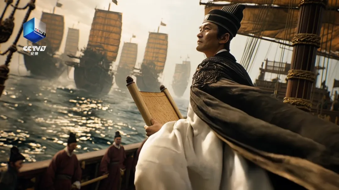 团队对八国文物与历史脉络进行了系统调研,从彭吉肯特壁画的舞姿韵律,到唐代铜镜的瑞兽纹样,从青花瓷的波斯笔迹,到郑和船队的航海图景,每一帧AI生成的画面,皆历经数十次算法调试、风格化推敲与美学重构。许琦老师强调:“AI不是替代,而是思维和意识的延伸;不是复制,而是艺术语言的转译。”团队以参数为笔、数据为墨,在数字维度中重建文明的视觉基因。
